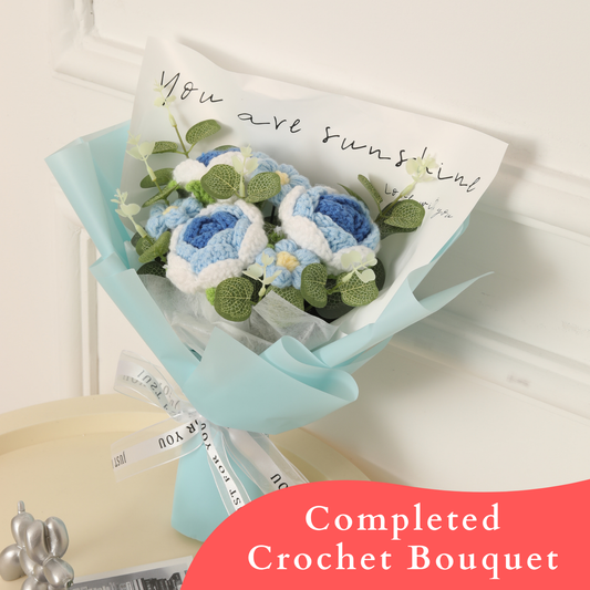 Completed Handmade Crochet Flower Bouquet (Blue Roses and Blue Mixed Flowers)